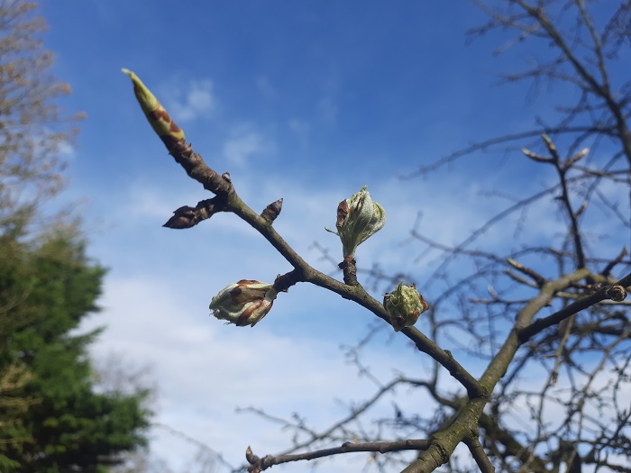 3 maart 2024: De oude stoofpeer ontvouwt zijn bloesem.