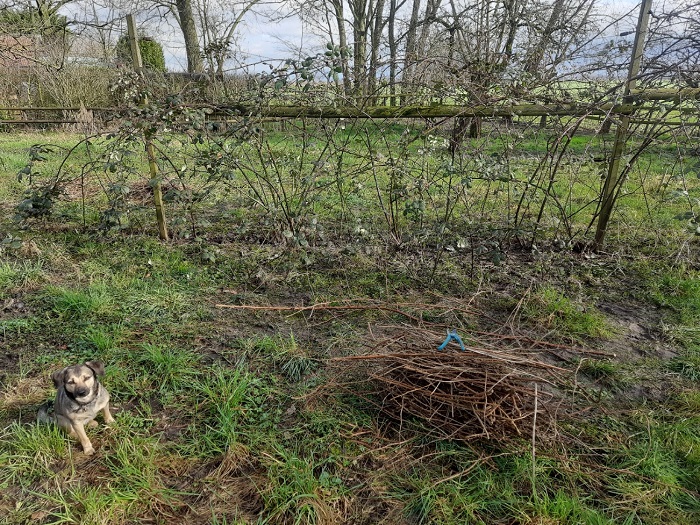 23 februari 2024: De bramenstruik wordt gesnoeid.
