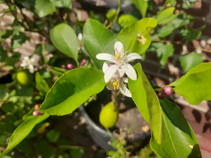 27 augustus 2024: De citroenboom is weer gaan bloeien.
