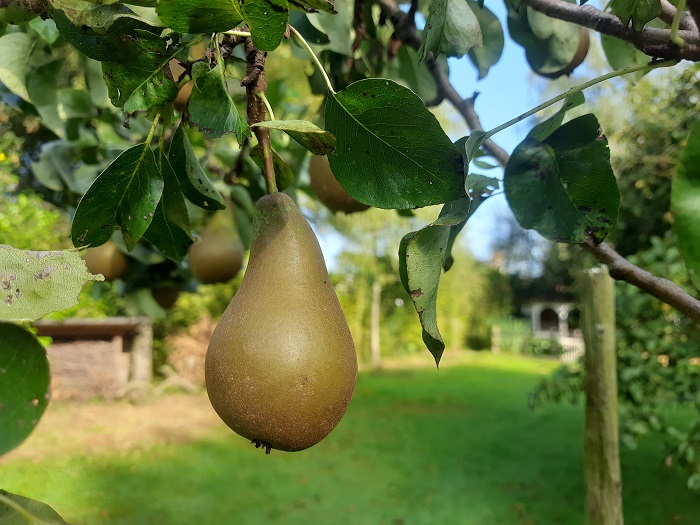 16 augustus 2024: De vorig jaar geplante Conference perenboom belooft een mooie oogst.